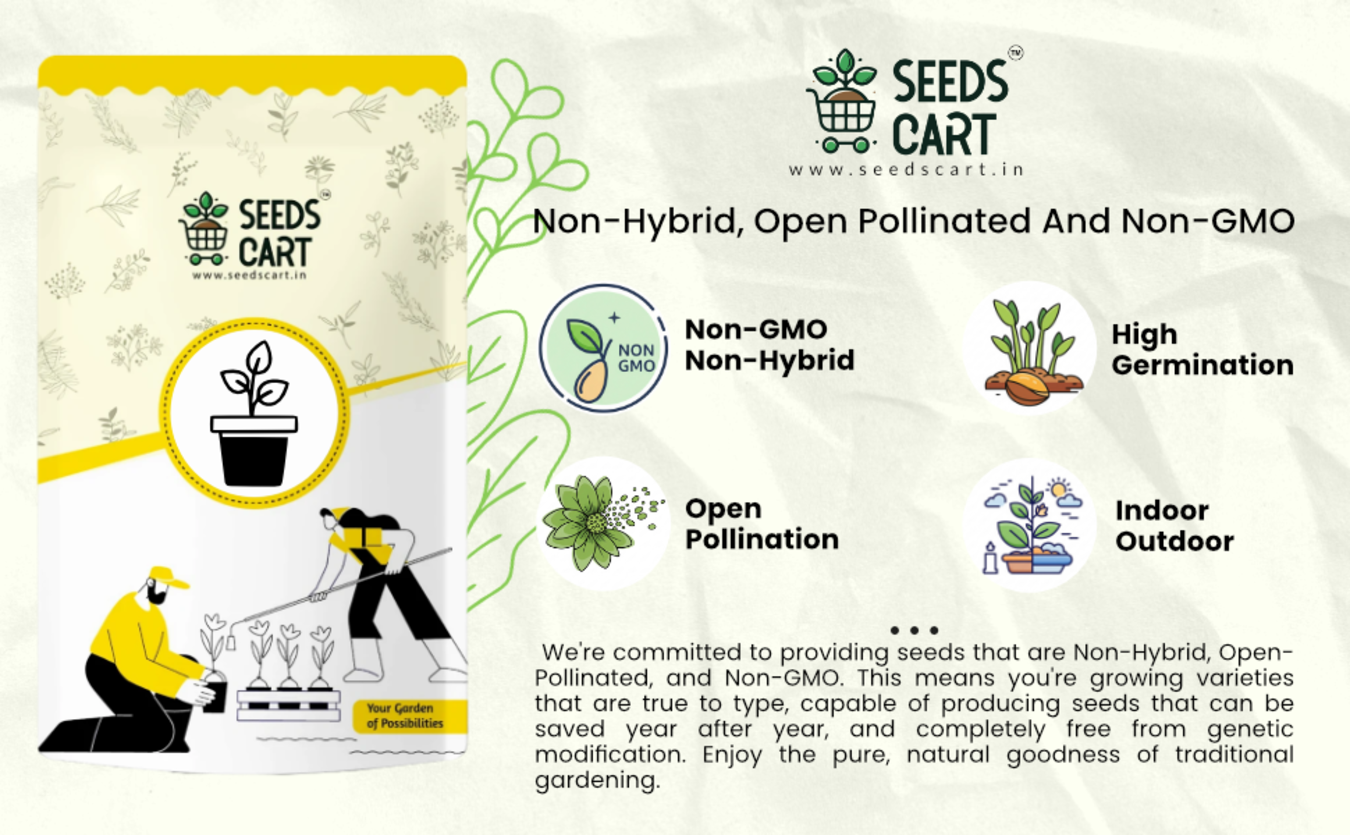 At Seeds Cart, we make gardening simple, sustainable, and rewarding. Our seeds are non-hybrid, open-pollinated, and non-GMO, ensuring that every plant you grow is pure, natural, and safe. With our premium-quality seeds, anyone can turn their kitchen or balcony into a green space that produces fresh, healthy food every day.